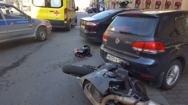 Водитель авто решил припарковаться с левого ряда (по словам пилота), сбил мот.