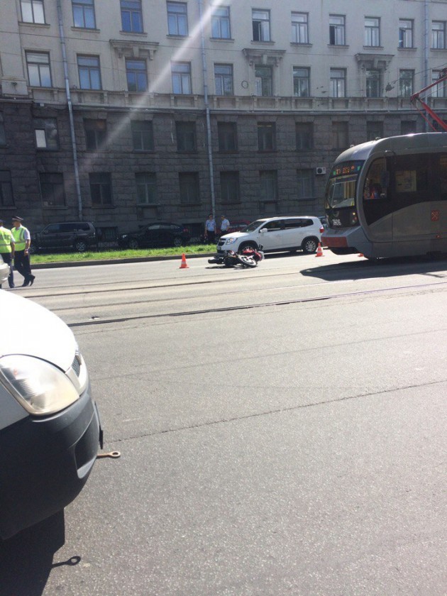 Мотоцикл BMW 5133АН78. Мотоциклист Денис Козлов, увозят на Вавиловых. Черепно мозговая и ушиб грудной клетки, все легко. Службы на месте.