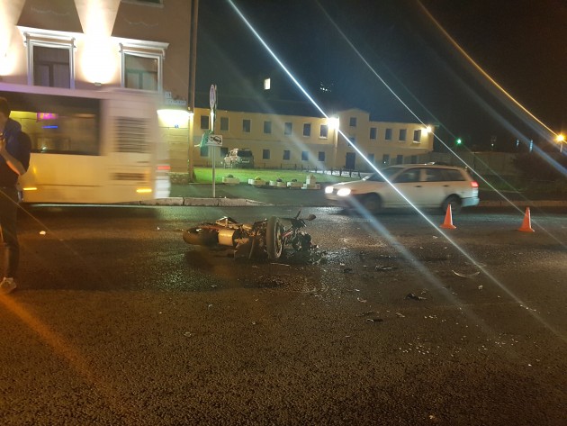 Примерно в 23:06. Мотоцикл и еще участники, автор находится на месте, есть и другие мотоциклисты.