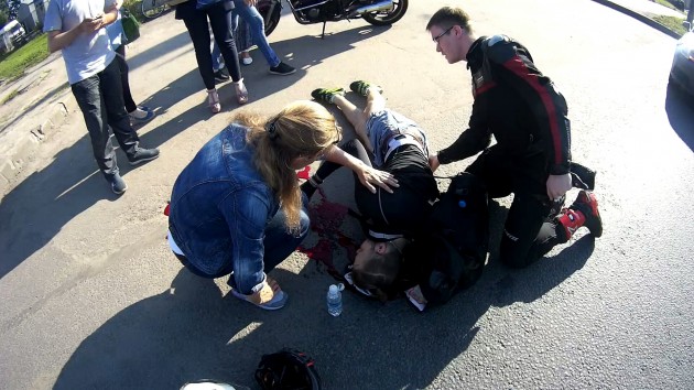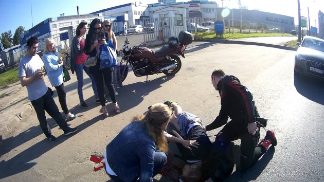 пр. Маршала Блюхера 2к1, Санкт-Петербург. Примерно в 8-50 проезжала по Блюхера. Заметила толпу, лежащего на земле парня в крови и мотоциклиста рядом с ним, оказывающего помощь. В отдалении стояла тачка на аварийках. Выяснить, что случилось не удалось - суетились вокруг парня. Вызвала скорую, экипаж подъехал быстро.