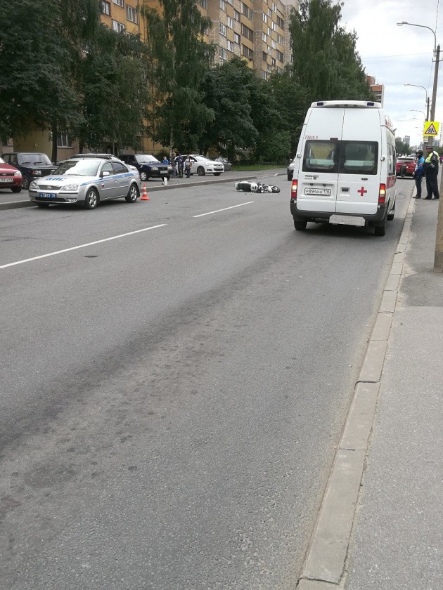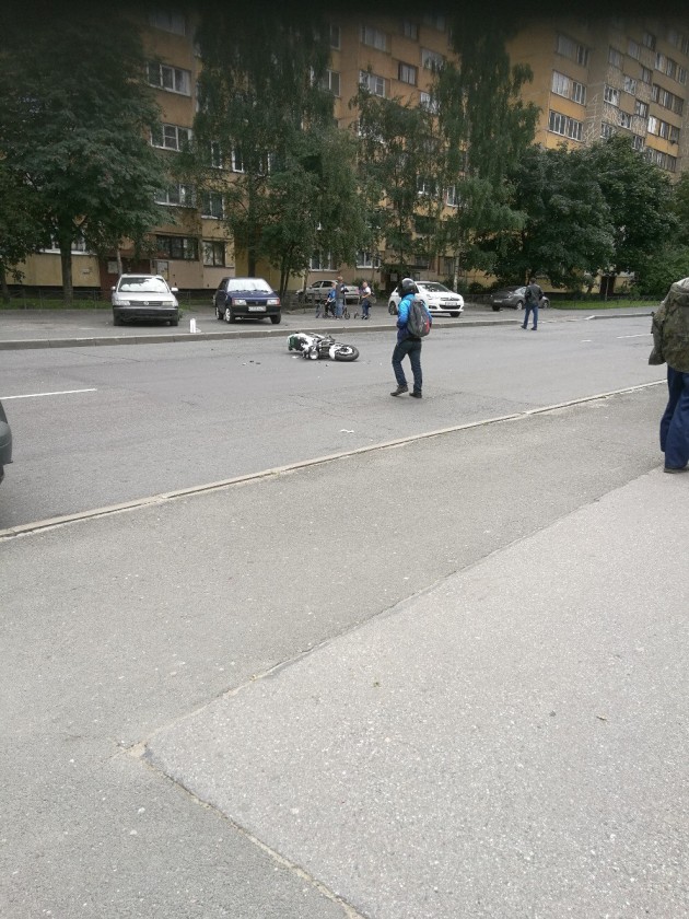 ул. Рихарда Зорге 18, Санкт-Петербург. На Рихарда Зорге 18 пьяный мужчина переходил дорогу перед мотоциклистом
