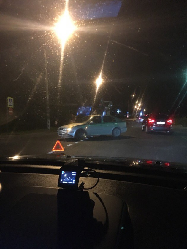 Авто после переезда в Ольгино поехал налево в сторону города по одностороннему. В лоб мотоциклисту. Хорошо чувак на моте соооовсем не спешил. Отделался ушибом ноги.