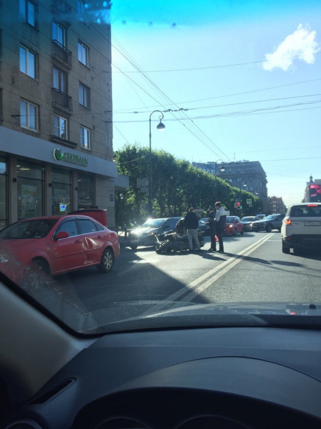 Примерно в 09:26. Мотоцикл и еще участники. Каменноостровский пр. 44, Санкт-Петербург. vk.com/spb_today?w=wall-68471405_7412818