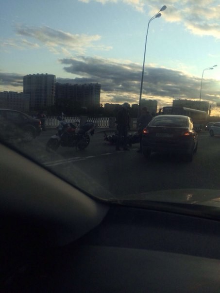 пр. Большевиков 102к1, Санкт-Петербург. На перекрёстке Октябрьской набережной и проспекта Большевиков сбили мотоциклиста