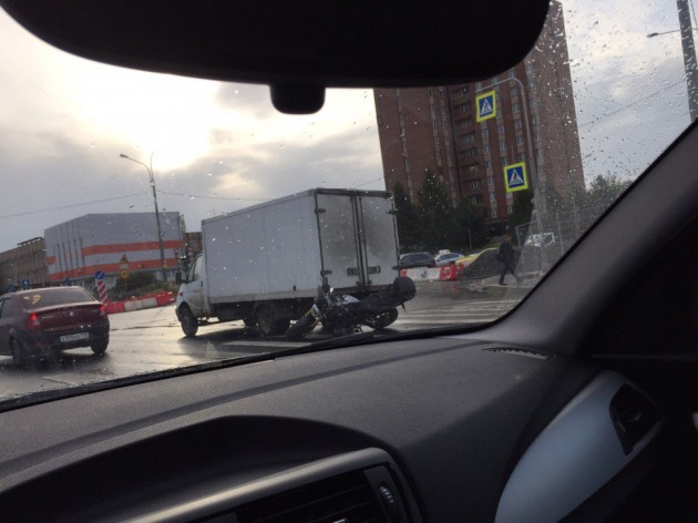 Глухоозёрское ш. 1, Санкт-Петербург. Авария с мото, третий участник иномарка с разбитым задним стеклом, пострадавшего уже, похоже увезли.Наб. Обводного канала и Глухоозерского ш., По Обводному пробка.