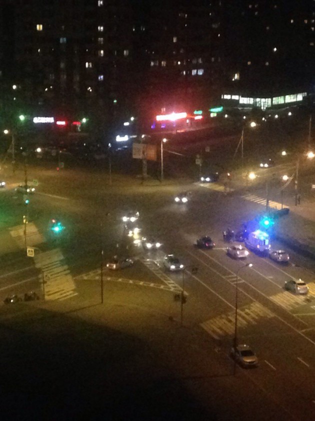 На перекрёстке Латышских стрелков, Российского и Товарищеского в 23:41 столкнулись мотоцикл и машина. Скорая приехала через 8 минут. Мотоциклист в порядке. Мот Honda (Дрозд) 8696АК78. Помощь не требуется.