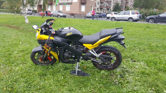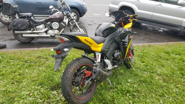 Паренек в Александровской больнице, обследуется. На место подошли его друзья, один из них присутствовал, когда оформляли ДТП. С его слов - мот ехал по Пятилеток в правом ряду, авто со среднего ряда решил повернуть во двор и не пропустил мот. Со слов друзей, права у водителя мота есть.
