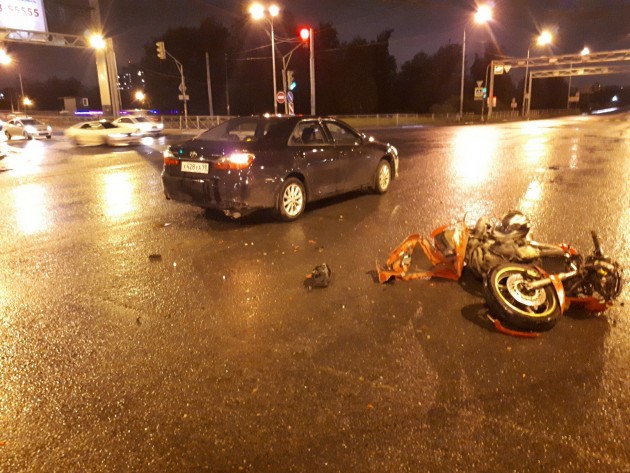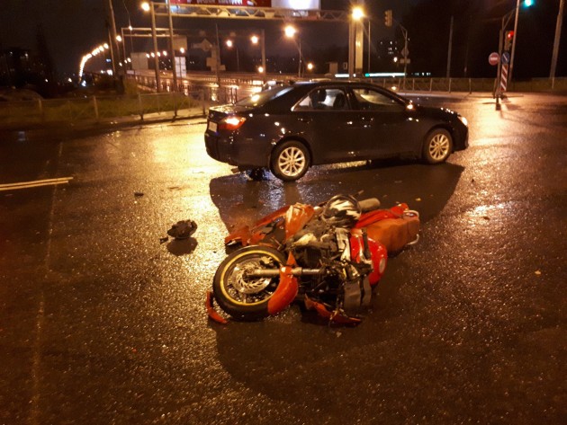 Примерно в 23:11. Мотоцикл и еще участники. Дтп с мото на перекрестке Индустриального и Хасанской.