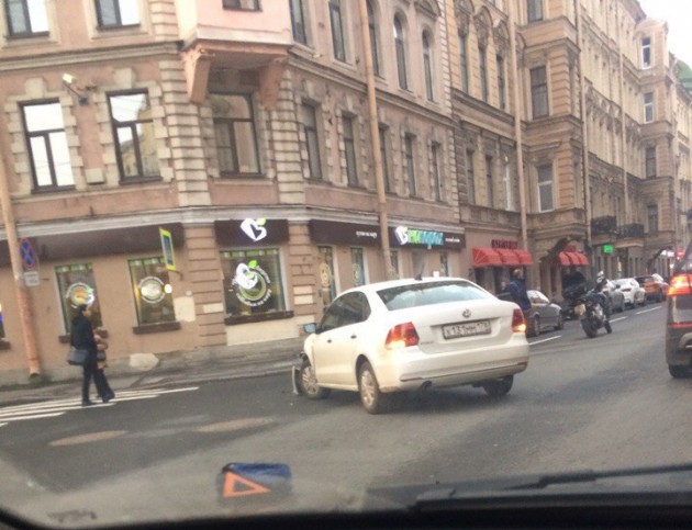 Дтп с мото примерно в 9:30. На перекрёстке Зверинской и Большого проспекта, Поло поворачивая налево со среднего ряда задел мотоцикл, который ехал прямо.