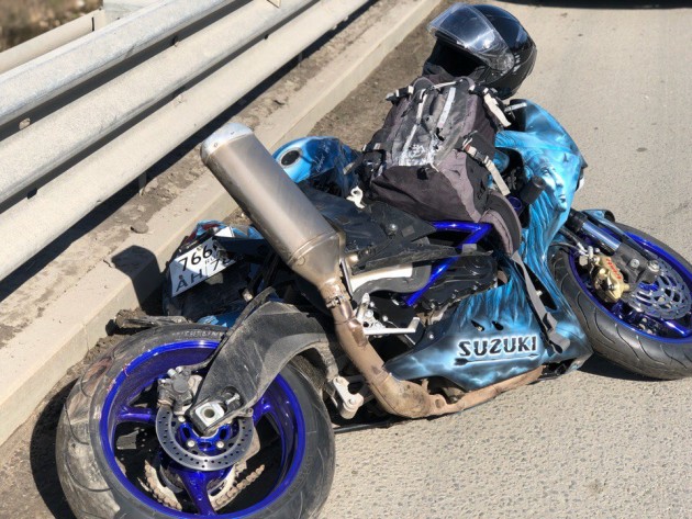 Мотоциклист жив и без травм. (Сразу скорая осмотрела, ушиб плеча и бедра. От госпитализации отказался. Но спустя 3-4 часа он заявил, что у него компрессионная травма позвоночника.)