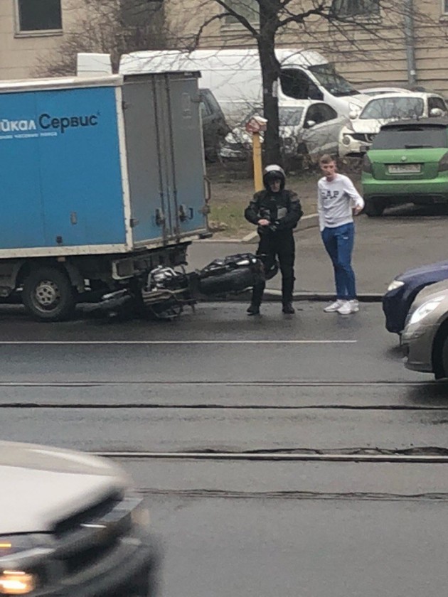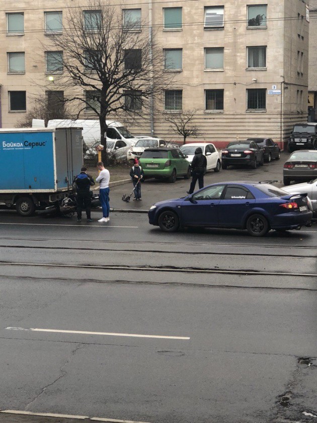 Дтп с мото. Мотоциклисту под машину помогла залететь Мазда на Торжковской у дома 2.