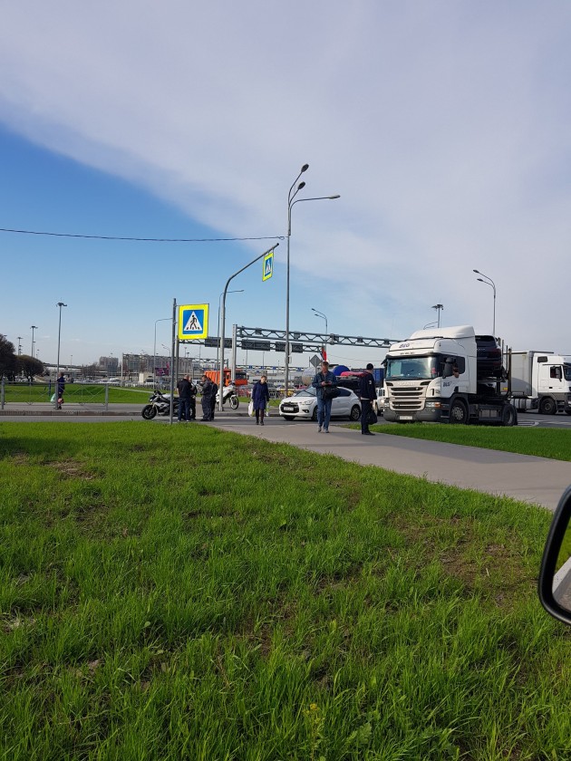 Примерно в 18:12. Мотоцикл и еще участники. Мотоцикл с легковой на Пулковском шоссе.