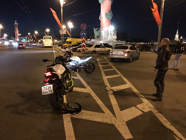 Машина и мотоцикл. Все целы, кроме мотоцикла и машины. Оформляют Европротокол.