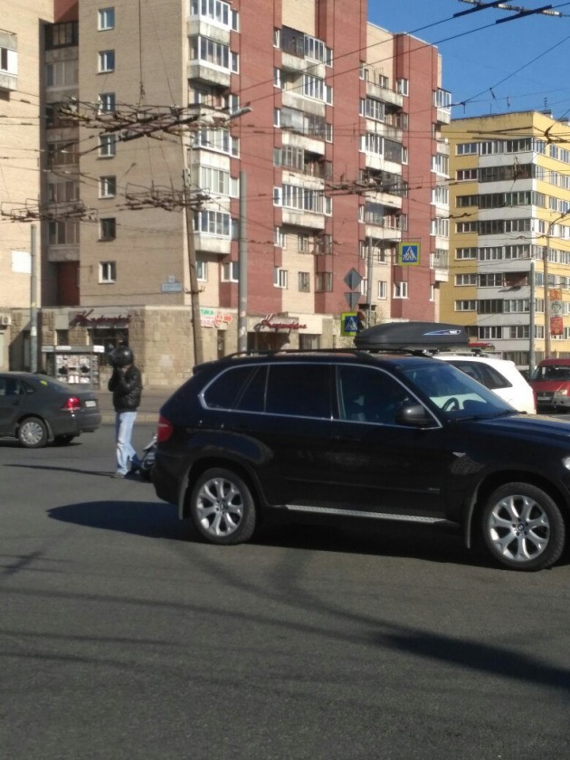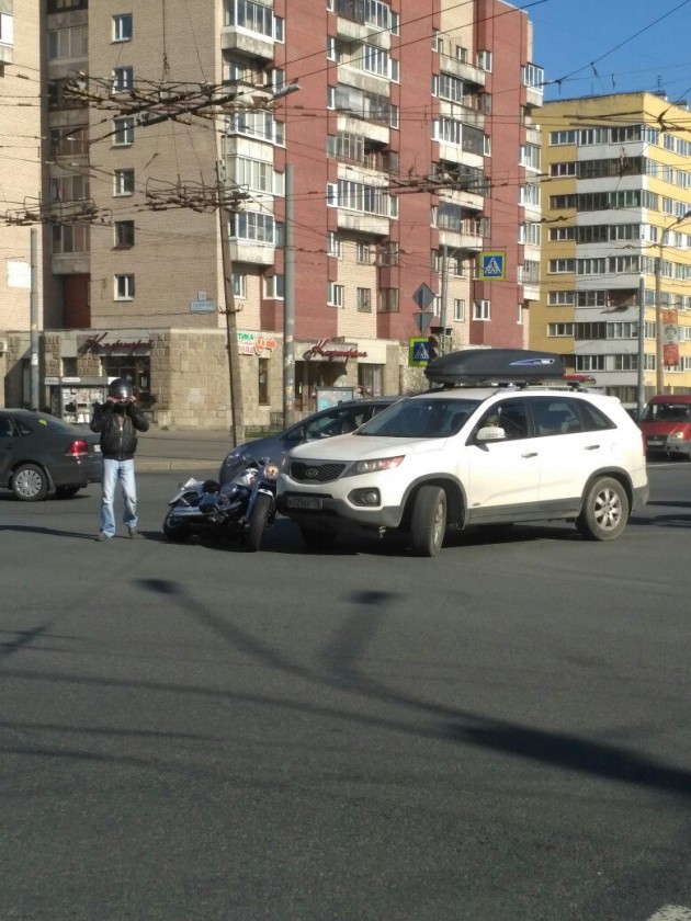 Мотоциклист и Киа Соренто встретились на перекрёстке Ленинского и Зины Портновой.