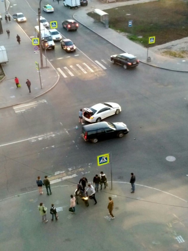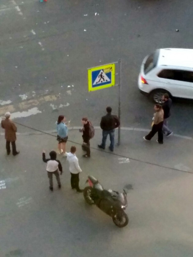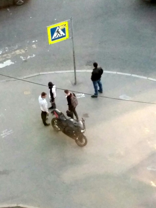 Дтп с мото на перекрёстке Варшавской и Бассейной улиц. Девушка сбила мотоциклиста, все живы, парень прихрамывает.