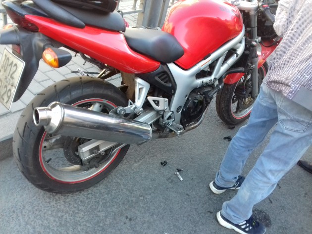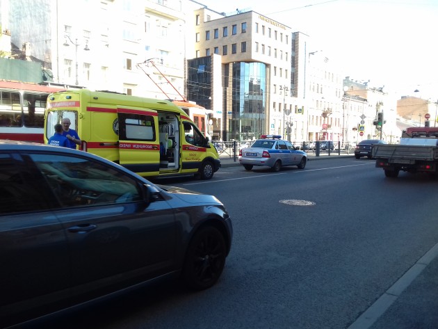 Лиговский проспект 124, Санкт-Петербург. ДТП на Лиговском 124. Товарищ на авто ( мицубиси) подбил мотоциклиста (sv400). Живы, здоровы. Немного помялись. На мото лапка тормоза ножного отломалась. На месте Гибдд и скорая.