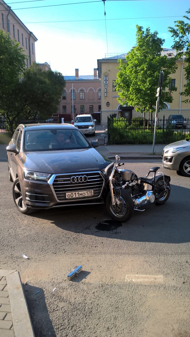 Дтп с мото около 18 часов на Большой Монетной. Пенсионер на ауди не пропустил мотоцикл. Мотоциклист хромал.