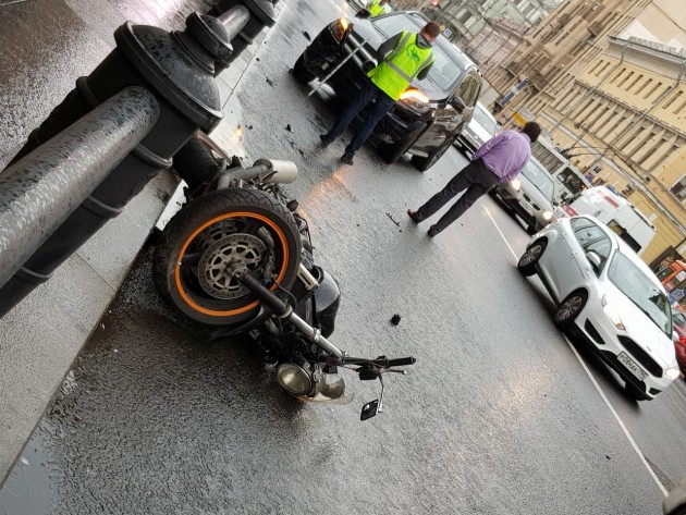 Дтп с мото и мерседесом на углу Литейного пр. и ул. Кирочная. Скорая увезла мотоциклиста.