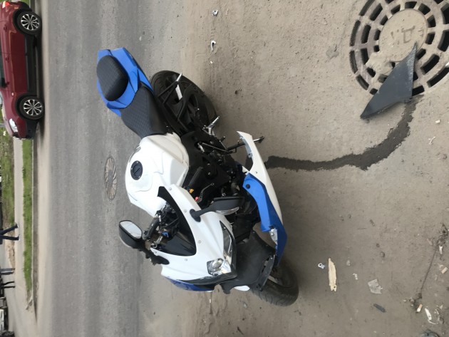Итальянский переулок, деревня Кудрово. Контактный телефон +7 (911) 730-9966. Мотоцикл без документов. Ключи в замке. Мотоциклист и его пассажир ушли с места ДТП. Оба без экипировки, пассажир ещё и без шлема. Возможно мотоцикл в угоне. Владельцы машины ждут ГИБДД, у них КАСКО.