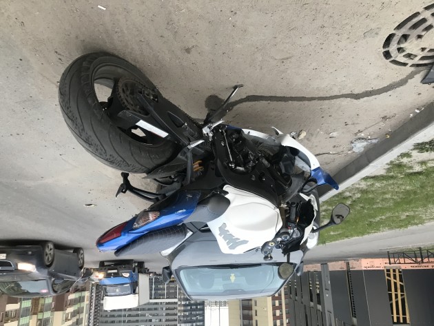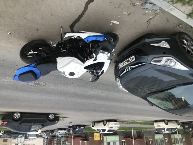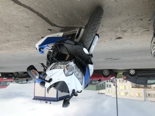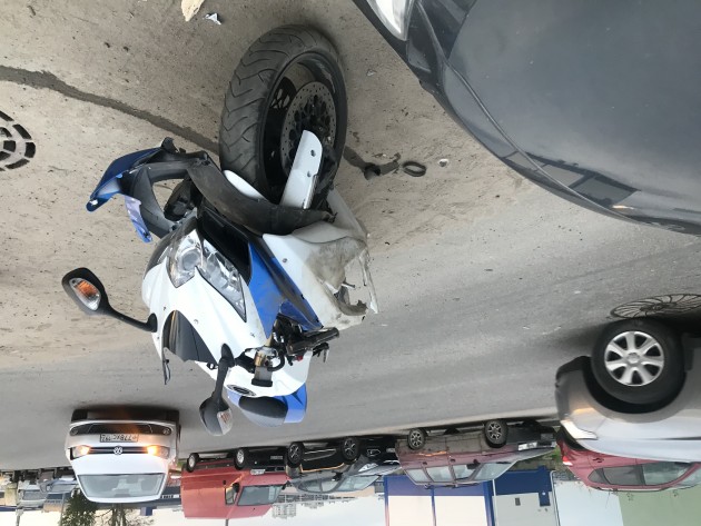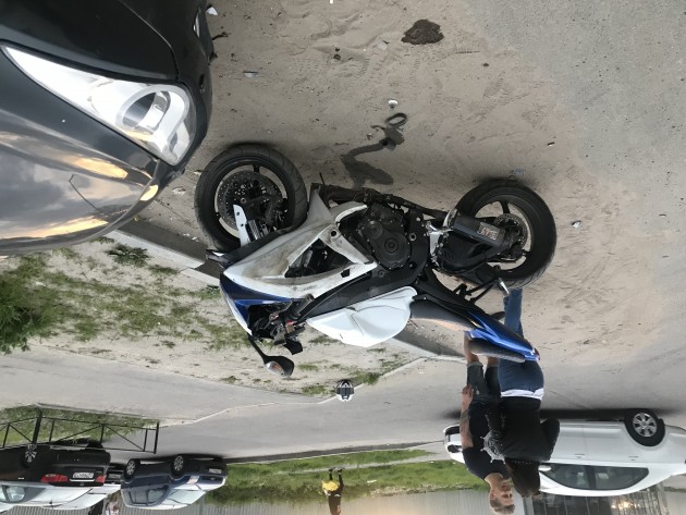 В ДТП виноват мотоциклист - обгонял по встречке и воткнулся в поворачивающих на лево. Фото с телефона - вверх ногами.