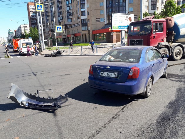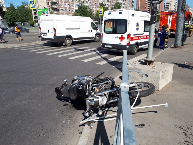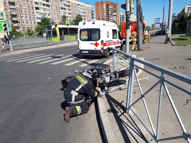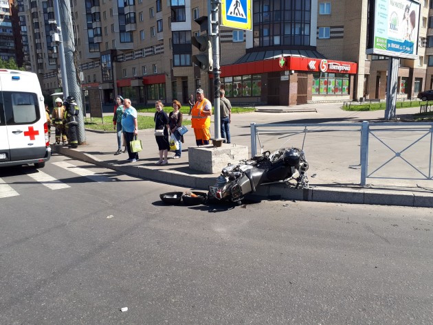 Дтп с мото на перекрестке Хасанской ул. и пр. Наставников, мотоциклисту оказывают помощь. Сказали нормально все.
