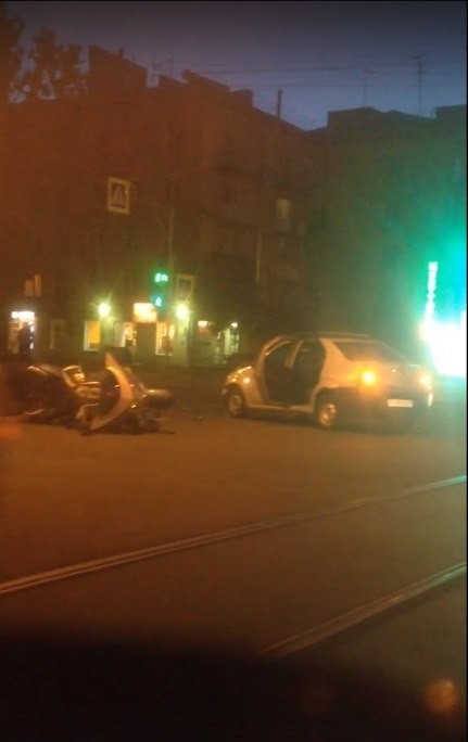 Дтп с мото на перекрёстке ул. Ленсовета и ул.Орджоникидзе. Логан и мотоцикл. Все живы, скорая на месте.