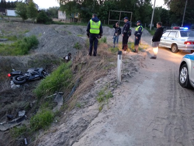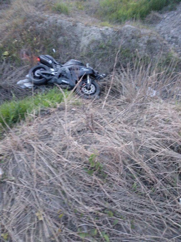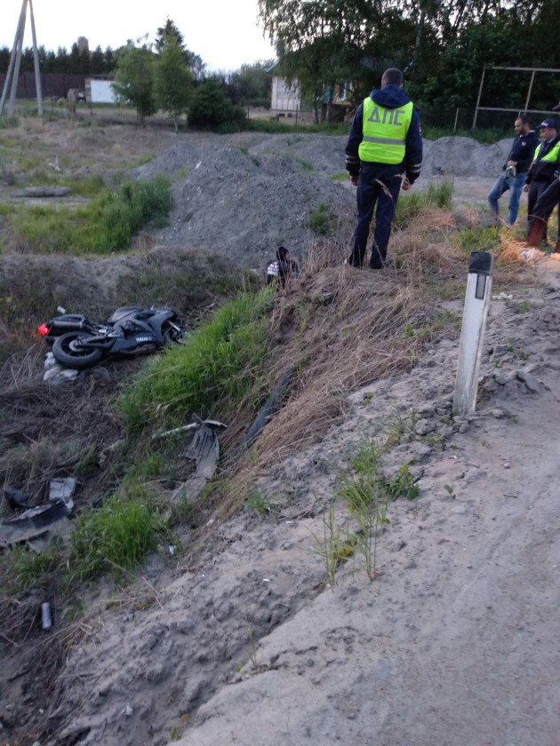 В Колтушах (геоотметка на фото была Молочный переулок, д. Старая) у парнишки не получилось свалить от полиции. В итоге мотоцикл в канаве.