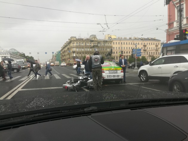 Дтп с мото и такси на Невском пр. перед Аничковым мостом.