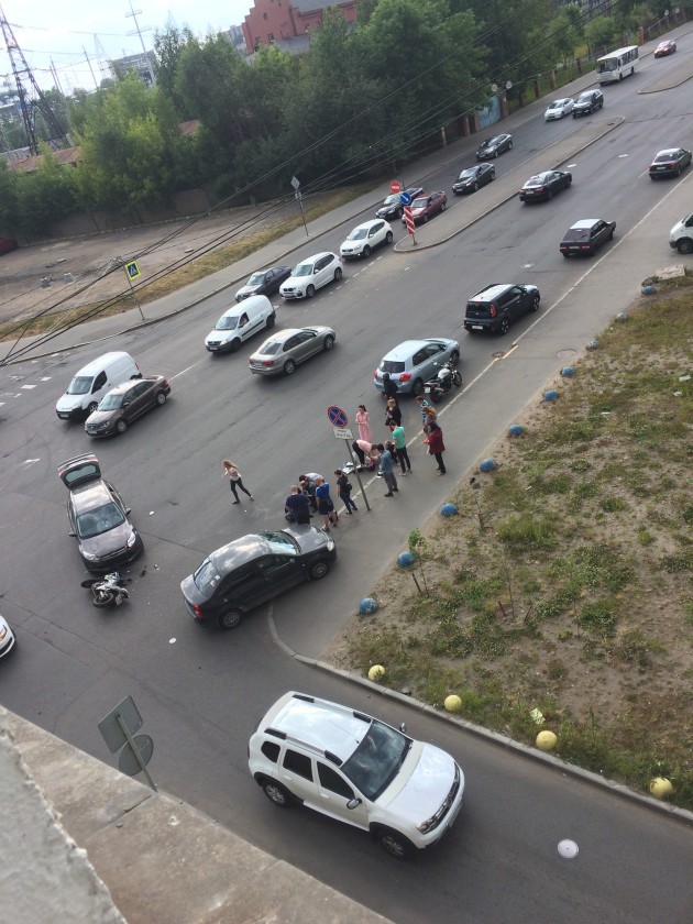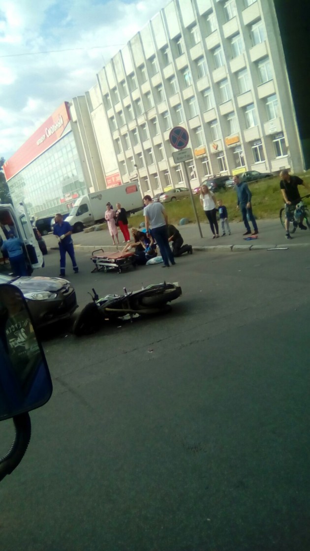 Дтп с мото на пересечении Полюстровского пр. и Чичуринского переулка. Парень с девушкой на мотоцикле, живы но с повреждениями. Не пропустила девушка на Форде.
