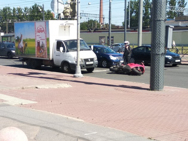 Примерно в 14:14. Мотоцикл и еще участники. Дтп с мото на перекрестке Лесного пр. и Гренадерской ул.