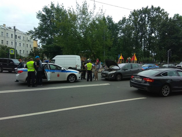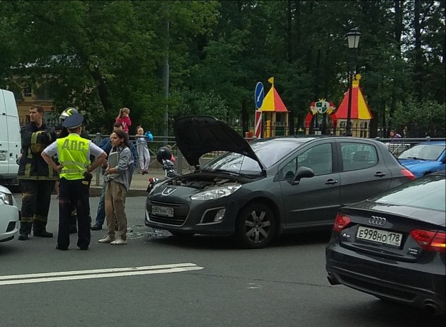 Дтп с мото на перекрестке пр. Бакунина и 3-й Советской. Столкнулись Пыжик 308 и мотоцикл, подробностей нет, все службы на месте.