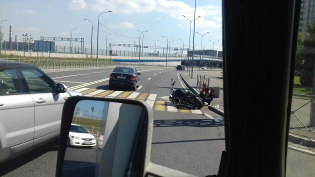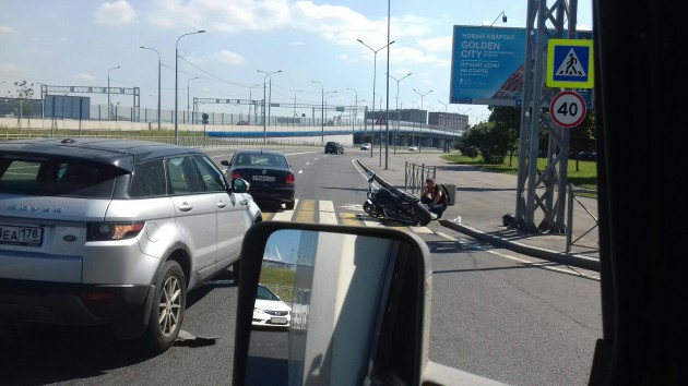 Дтп с мото на перекрёстке Морской набережной и Адмиральского проезда. Evoque и мотоцикл.