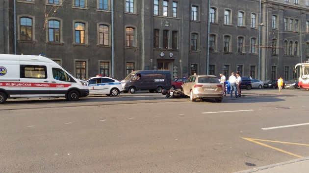 Примерно в 19:04. Мотоцикл и еще участники. Дтп с мото на 1-ой Красноармейской улице д.1/21А.