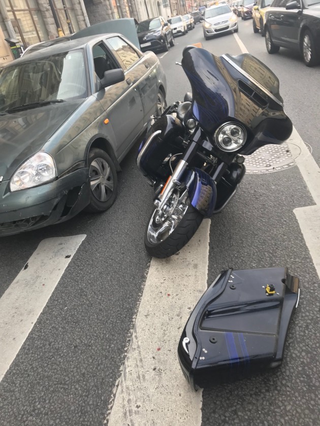 Дтп с мото на Литейном проспекте. Лада подрезала мотоциклиста, завязалась драка, водителю чутка разбили лицо.