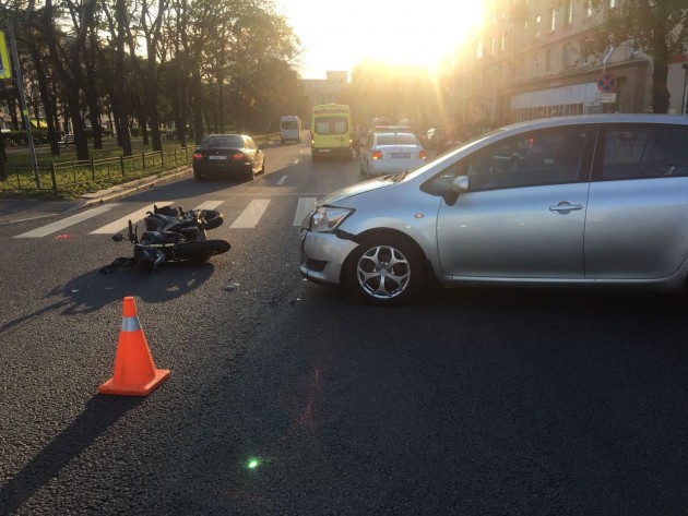 Дтп с мото на ул. Типанова. Дама на авто не пропустила мотоцикл, выезжая на главную. Мотоциклист Сергей Чвыков, жив. Помощь не нужна.