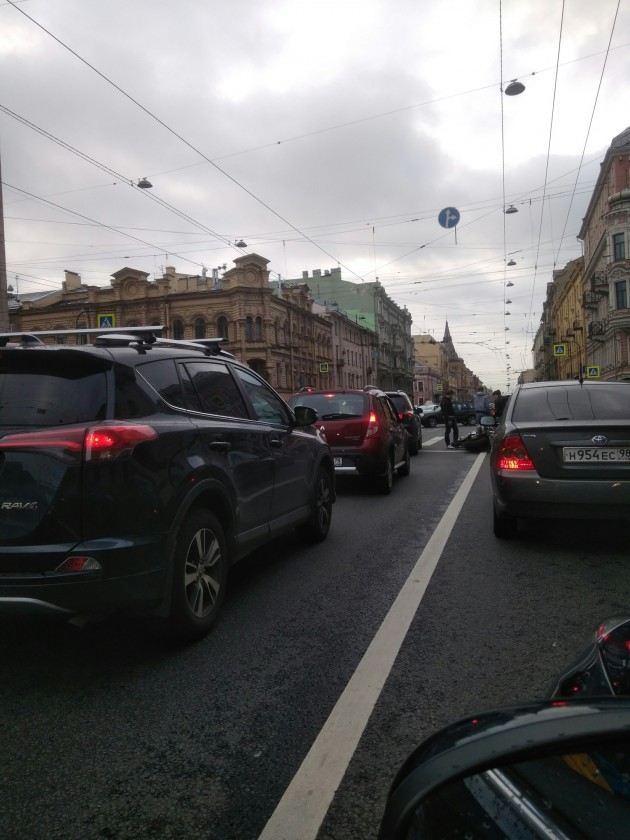 Дтп с мото на перекрестке Литейный пр. и ул. Чайковского. Мотоциклист не пострадал.