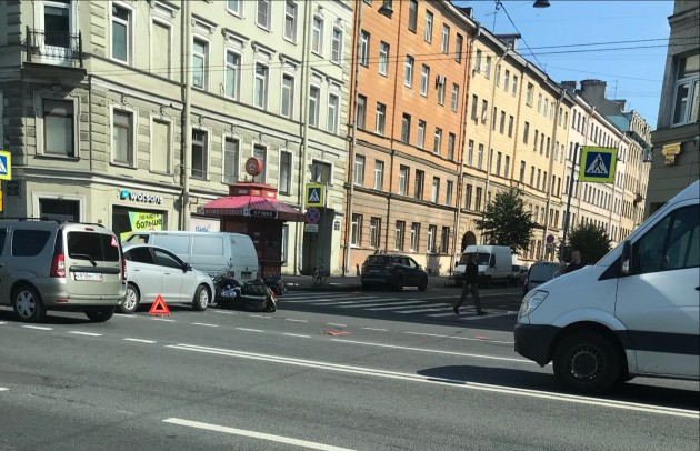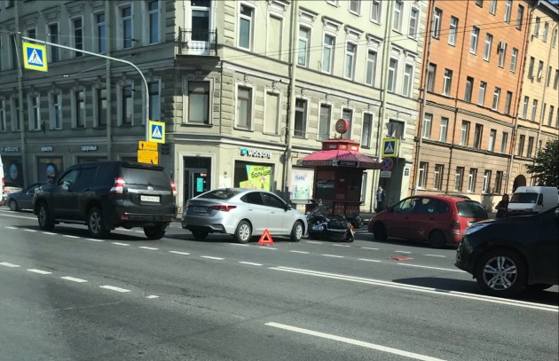 Дтп с мото на перекрестке Лермонтовского пр. и 13-й Красноармейской.
