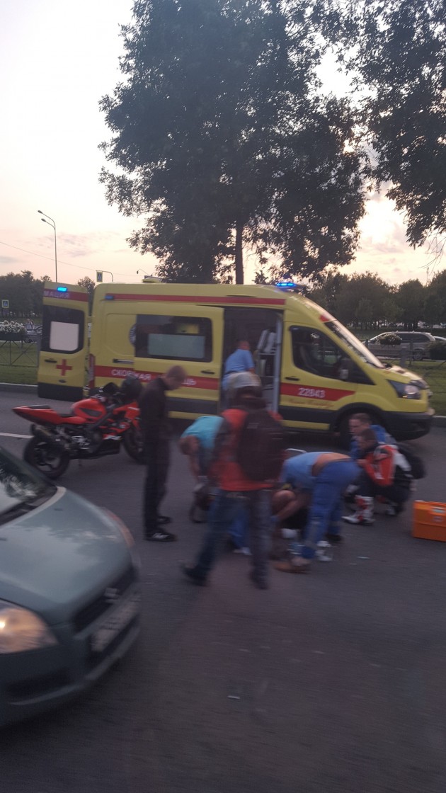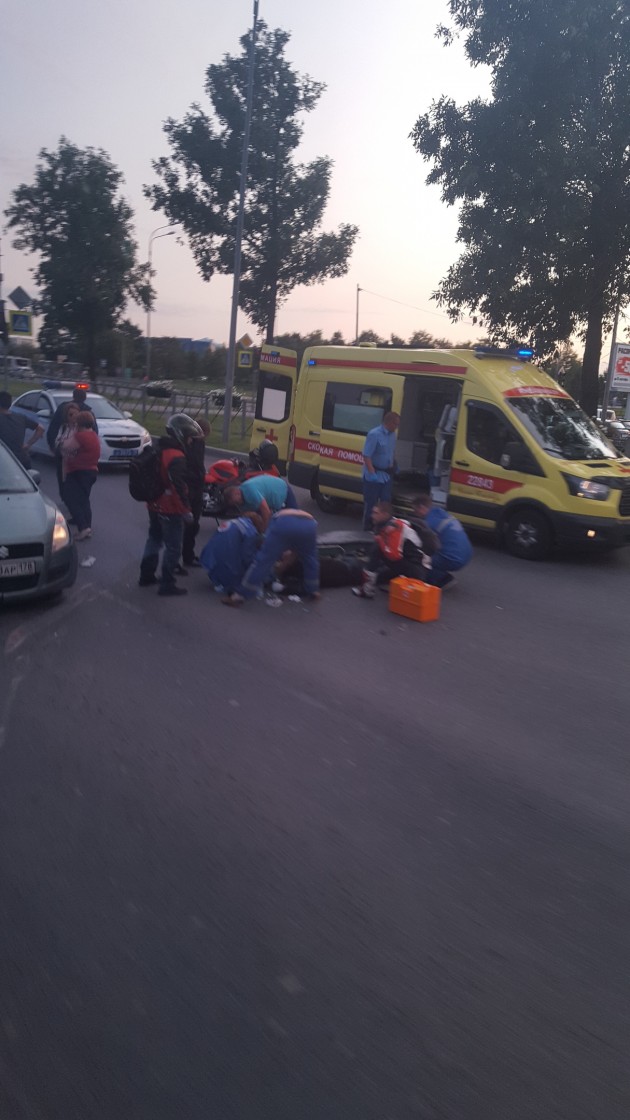 Примерно в 18:06. Мотоцикл и еще участники. Дтп с мото на перекрестке Пулковского ш. и Дунайского пр..