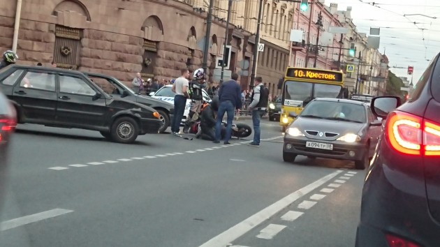 Дтп с мото на пересечении Московского пр. и Загородного пр..