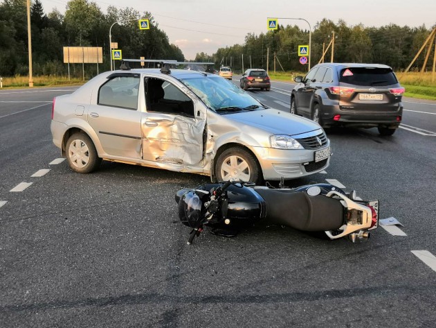 Дтп с мото примерно в 16:30 на Мурманском шоссе в районе п.Кипуя, на перекрестке с дорогой в сторону Нурма. Дтп между мотоциклом BMW и Рено Логан. Мотоциклист находится в больнице.