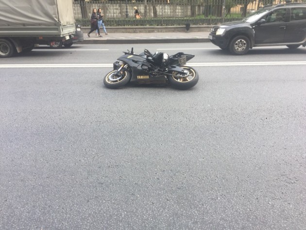 Дтп с мото на Каменноостровском пр. у дома 28/26, мотоциклист сбил пешехода, оба живы.