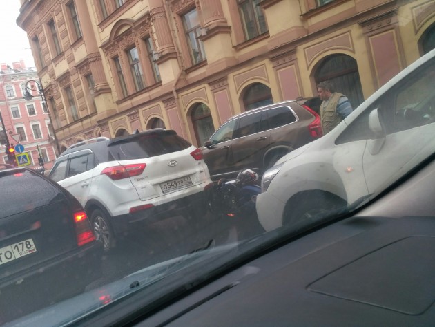 Дтп с мото примерно в 13:00 на Владимирском пр. д.49/2. Два авто и мотоцикл.