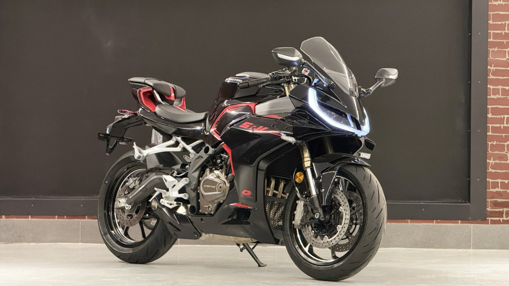 QJMOTOR SRK 421 RR — это среднекубатурный спортивный мотоцикл, созданный для начинающих и опытных райдеров, которые хотят получить агрессивный внешний вид и острые ощущения от спортивной езды с более доступной мощностью и управляемостью. Двигатель: 4 -цилиндровый, 4-тактный двигатель, объемом 421 кубических сантиметр. Полностью обтекаемый дизайн в стиле больших спортбайков (superbike) с агрессивными линиями, двойной LED-фарой и аэродинамическими элементами. Посадка — спортивная, но более щадящая, чем на литровых моделях. Современный пакет электроники для безопасности: антиблокировочная тормозная система (ABS), несколько режимов езды, TFT-приборная панель.