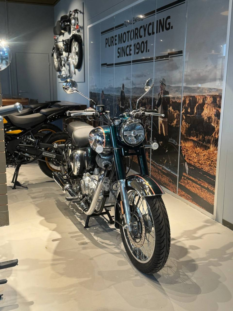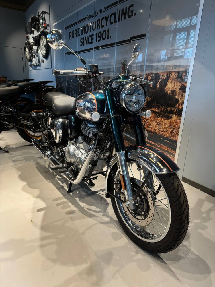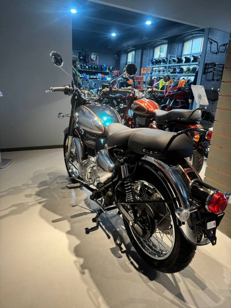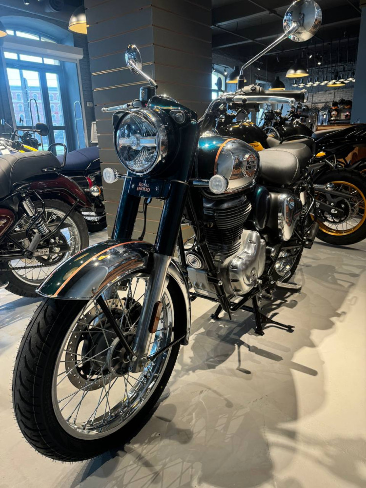 Новая модель Royal Enfield Classic Classic 350 следует традициям прошлого. Вдохновленный послевоенной моделью G2. впервые появившейся на свет в 2008 году. мотоцикл Классик 350 продолжает воспевать нестареющую эстетику. Изогнутые крылья и каплевидный топливный бак. фирменная фара с козырьком. выдержанные линии крышки картера. необычные цвета окраски. характерный звук выхлопной трубы – все это гармонично сочетается. превращаясь в шедевр. коим является неподвластный времени Royal Enfield Classic.